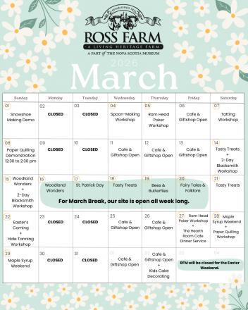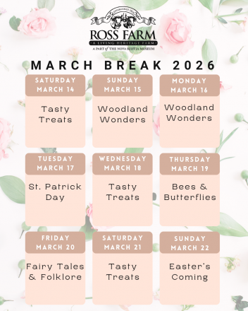 Visit Ross Farm Museum to explore our 60 acres of picturesque farmland and discover what life was like on a Nova Scotia family farm over 100 years ago.